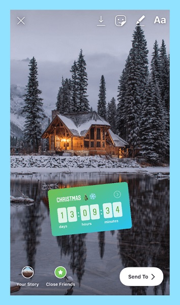 - مانند سایر استیکرها در استوری، این امکان به شما داده شده تا اندازه استیکر شمارش معکوس را بزرگ و کوچک کنید و یا محل قرارگیری آن را تغییر دهید.