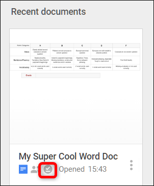 با این کار گوشه بخش پایین هر فایل یک علامت تیک خاکستری رنگ به نمایش در میآید. این علامت در هر سه سرویس یکسان است و تفاوتی از این لحاظ بین فایلهای اسناد، صفحات گسترده و اسلایدها نیست.