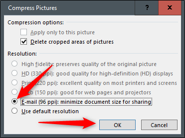اگر می خواهید که فقط یک عکس خاص را ویرایش کنید، عکس را انتخاب کرده و به Picture Tools Format > Compress Pictures بروید، سپس روی OK کلیک کنید. مطمئن شوید که بعد از کار فایل ارائه را ذخیره میکنید.
