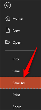صفحه مرورگر فایل های ویندوز ظاهر می شود. در قسمت Save As باید نوع فایل را به عنوان PowerPoint Presentation انتخاب کنید؛ این همان پسوند PPTX است. Save را کلیک کنید.