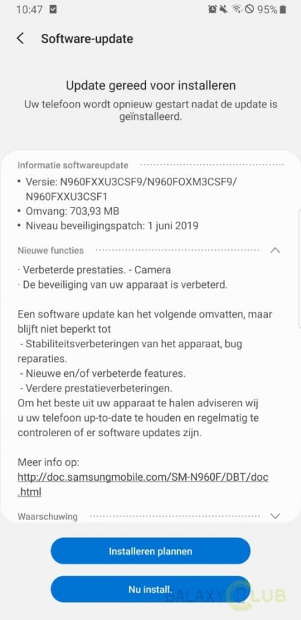 سامسونگ قابلیت حالت تاریک دوربین را با آپدیت نرم افزاری N960FXXU3CSF9 برای گوشی مذکور ارسال کرده است. این به روزرسانی حدود 704 مگابایت حجم دارد. با کمک این به روزرسانی کاربران قادر به دسترسی به حالت تاریک و برخی دیگر از اطلاعات دیگر خواهند بود.