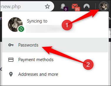 برای اینکار ابتدا اطمینان حاصل کنید که ذخیره ساز رمزعبور در کروم فعال باشد (این قابلیت باید بهطور پیشفرض فعال باشد). برای بررسی آن کافیست روی تصویر پروفایل خود در گوشه سمت راست کلیک کرده و سپس روی گزینه Passwords کلیک کنید.