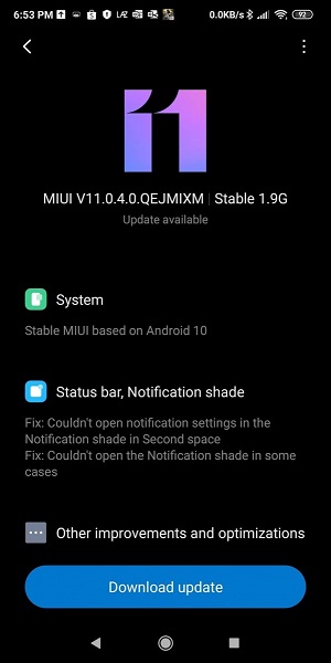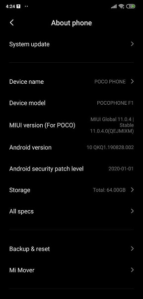 گزارشات نشان می دهد که شرکت شیائومی، بروزرسانی رابط کاربری MIUI 11 مبتنی بر اندروید 10 را برای گوشی Pocophone F1 منتشر کرده است. این بروزرسانی جدید دارای شماره نرم افزاری 11.0.4.0QEJMIXM و شامل پچ امنیتی اول ژانویه 2020 می شود.