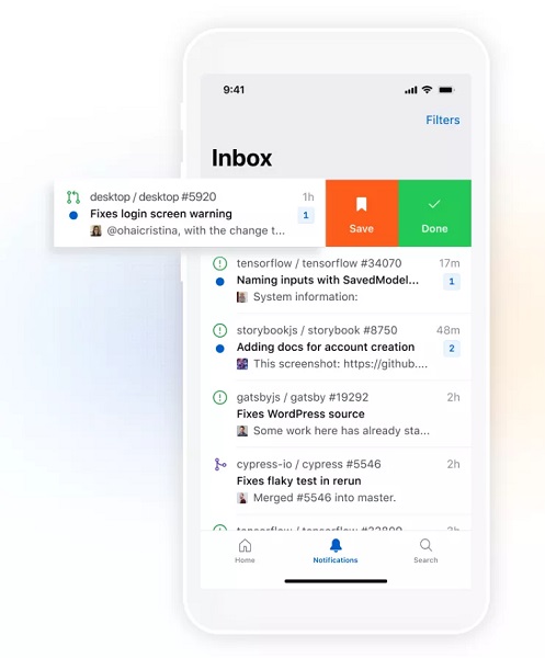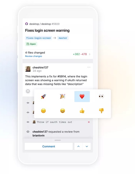 اعلان های گیت هاب نیز در حال حاضر در بالای بخش inbox نمایش داده و می توانید وظایف را برای ذخیره و علامت گذاری سواپ کنید. شما همچنین می توانید به نظرات با ایموجی واکنش نشان دهید. به علاوه، توسعه دهندگان قادرخواهند بود تا کد های مشاهده کنند، ولی امکان ویرایش کدها میسر نیست.