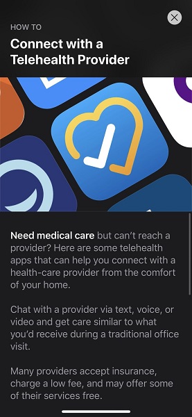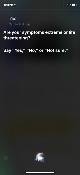 به روزرسانی سیری برای تسریع شناسایی ویروس کرونا در روز شنبه انجام شده و با طرح سوالاتی مشخص میشود آیا افراد نشانههای این بیماری مانند تب، سرفه خشک، تنگی نفس و غیره را دارند یا خیر. سیری در نهایت به کاربرانی که به نظر میرسد به شدت به کرونا مبتلا هستند تاکید میکند که با شماره ۹۱۱ تماس بگیرند.