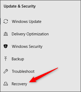 در پنجره تنظیمات، بر روی گزینه Update & Security در پایین پنجره کلیک کنید. در لیست سمت چپ پنجره «Update & Security» باید گزینه «Recovery» را برگزینید. اکنون شما در پنجره Recovery هستید. در پایین تیتر «Reset This PC»، توضیحات نوشته شده را به دقت مطالعه کرده و سپس بر روی کلید «Get Started» کلیک کنید.