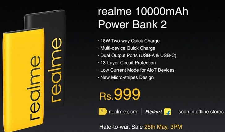 مدل بعدی Realme Power Bank 2 نیز از شارژ سریع دو طرفه 18 واتی پشتیبانی کرده و دارای یک پورت USB-A و یک پورت USB-C است. این پاوربانک قرار است در هند با قیمت 999 روپیه به فروش برسد.