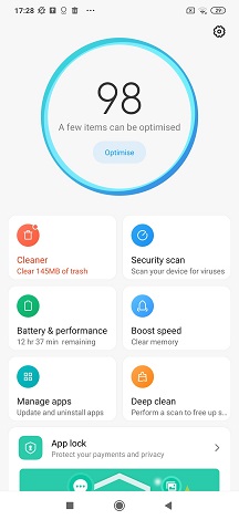 یک App Drawer به طور پیش فرض در MIUI فعال نیست، هر چند می توانید آن را از تنظیمات صفحه اصلی انتخاب کنید. MIUI همچنین یک برنامه امنیتی ارائه می دهد. این می تواند گوشی شما را برای بدافزار اسکن کند، لیست سیاه شما را مدیریت کند، نظارت بر استفاده از داده های شما را کنترل یا محدود کند، رفتار باتری را پیکربندی کرده و رم را آزاد کند. همچنین می تواند مجوزهای برنامه های نصب شده شما را مدیریت کند و به شما امکان می دهد رفتار باتری برنامه های انتخاب شده را تعریف کنید و محدودیت ها را فقط برای برنامه های انتخاب شده اعمال می کنید.