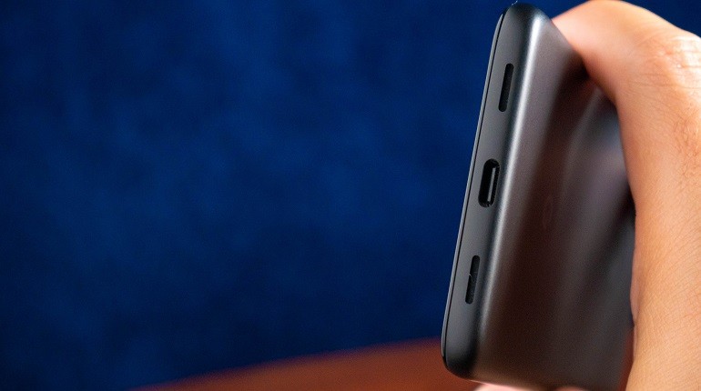 در جلوی دستگاه، نمایشگر 5.81 اینچ اولد و دوربین سلفی حفره دار 8 مگاپیکسلی را مشاهده خواهید کرد که با داشتن برش در حاشیه، صفحه نمایش را جدا می کند. بلندگوی جلو اکنون به صورت یک شکاف کوچک در بالای نمایشگر تعبیه شده است. در بالا یک جک هدفون وجود دارد که دیگر در تلفن های رده بالاتر مشاهده نمی کنید. در پایین پورت USB-C و دو شکاف متقارن – راست بلندگوها و دیگری میکروفون – مشاهده می کنید.