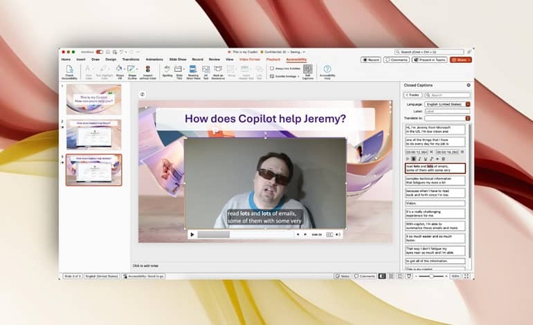 مایکروسافت به مناسبت روز جهانی آگاهی از دسترسی‌پذیری، قابلیت جدیدی را برای کاربران پاورپوینت در مک معرفی کرده است. این ویژگی به کاربران اجازه می‌دهد تا برای ویدیوهای جاسازی‌شده در ارائه‌های خود، زیرنویس تولید کنند (آن هم با استفاده از فناوری تشخیص گفتار).