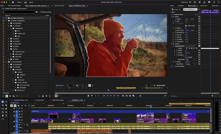 ویژگی دیگر با نام Harmonize امکان قرار دادن اشیاء یا افراد در محیطهای مختلف بهصورت واقعگرایانه را فراهم میسازد. این ابزار نور، رنگ و تُن عناصر پیشزمینه را با پسزمینه هماهنگ میکند و نیاز به پردازشهای پیچیده ترکیب تصویر را کاهش میدهد. در نرمافزار Premiere نیز قابلیت جدیدی با عنوان AI Object Mask معرفی شده که بهصورت خودکار افراد و اشیاء را در ویدیو شناسایی و جدا میکند تا بدون نیاز به روتوسکوپی دستی قابل ویرایش و ردیابی باشند.