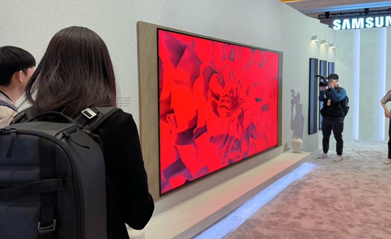 در میان موج بیپایان هیاهوی هوش مصنوعی، سامسونگ در CES 2026 با یک غافلگیری بزرگ ظاهر شد: تلویزیون 130 اینچی Micro RGB که بهمعنای واقعی کلمه یک هیولاست. این نمایشگر آنقدر بزرگ است که توسط یک پایه فلزی عظیم که کل صفحه را در بر میگیرد، معلق نگه داشته میشود؛ پایهای که امکان تنظیم جزئی زاویه صفحه را نیز فراهم میکند. مشابه تلویزیون Micro RGB الجی، این مدل نیز از نسخهای پیشرفته از فناوری Mini LED بهره میبرد که دقت رنگ و غنای تصویری بهمراتب بالاتری ارائه میدهد.